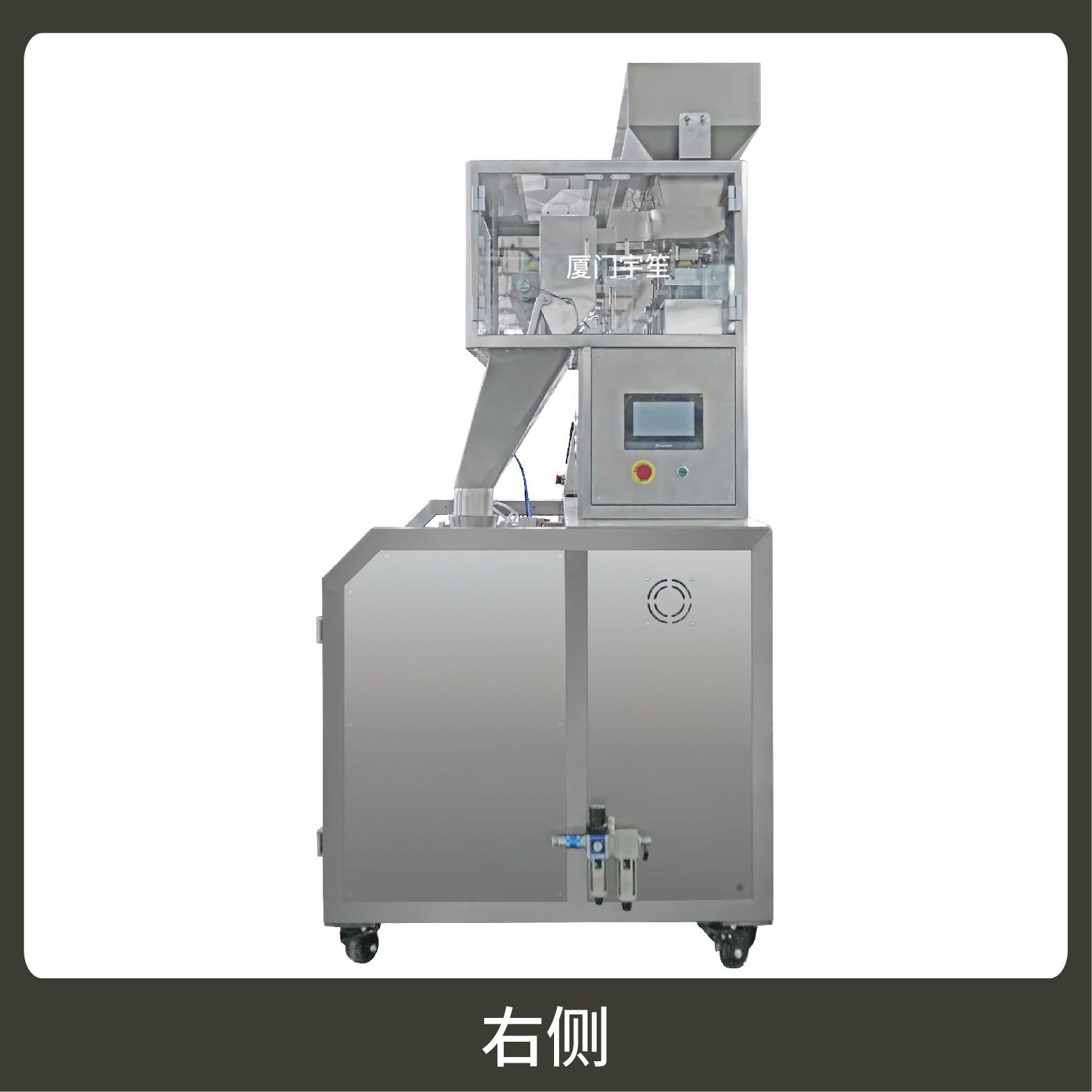 2、用于自封袋、站立袋、拉鏈袋,可抽真空、充氮氣。包裝流程全自動,無需人工操作。可根據(jù)充填物料的性質選配不同的下料結構,且可根據(jù)客戶要求配置打印批號等功能。