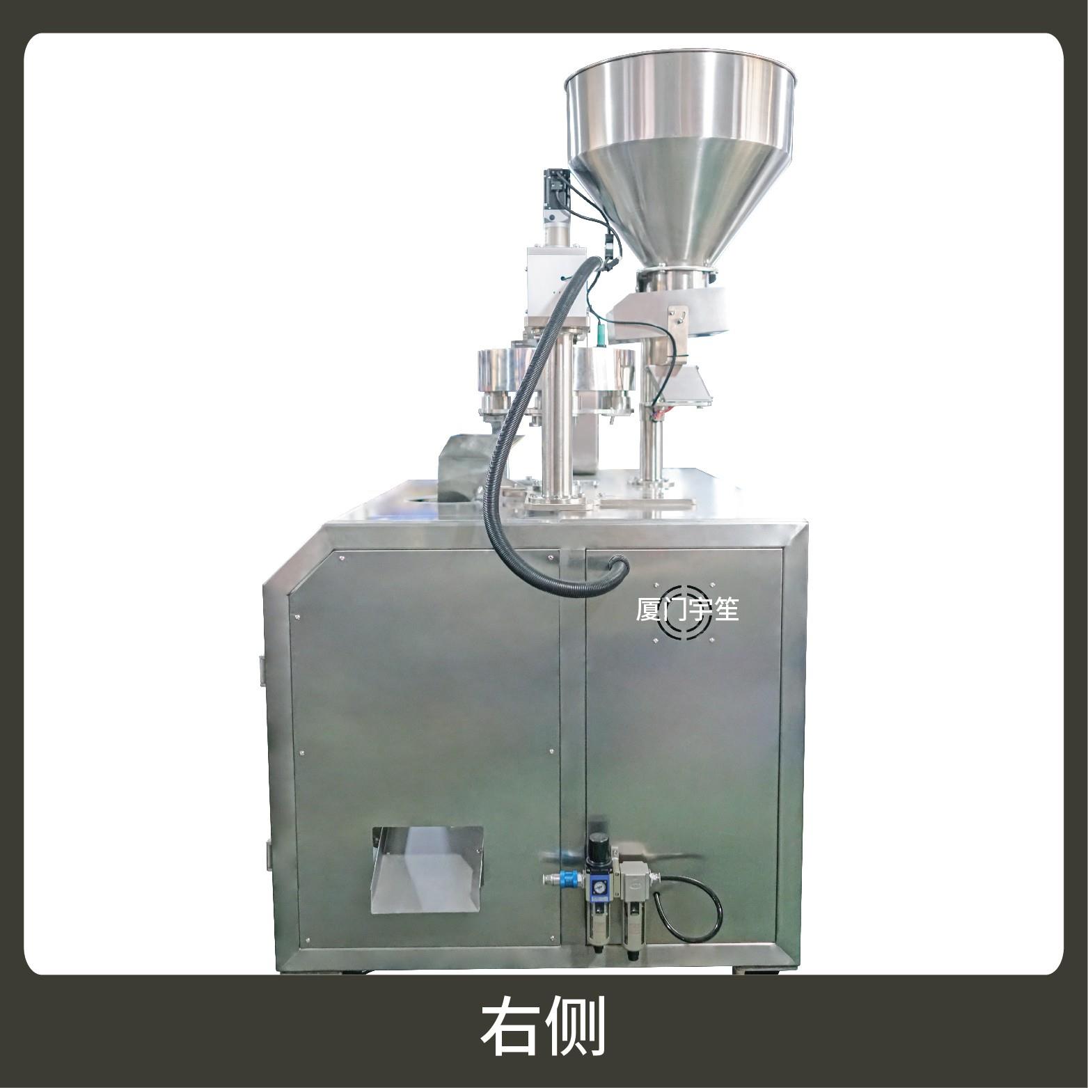 2、包裝流程全自動(dòng),無(wú)需人工操作,可抽真空、充氮?dú)?、組合下料??筛鶕?jù)充填物料的性質(zhì)選配不同的下料結(jié)構(gòu),且可根據(jù)客戶要求配置打印批號(hào)等功能。